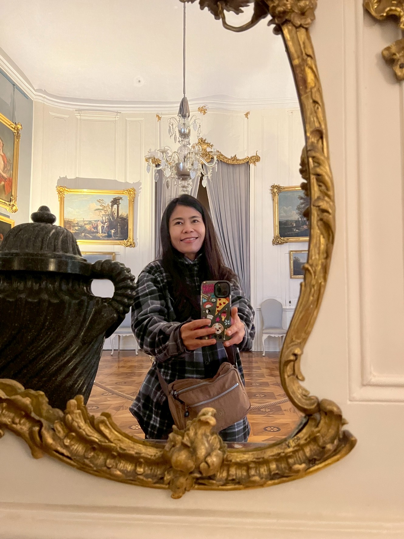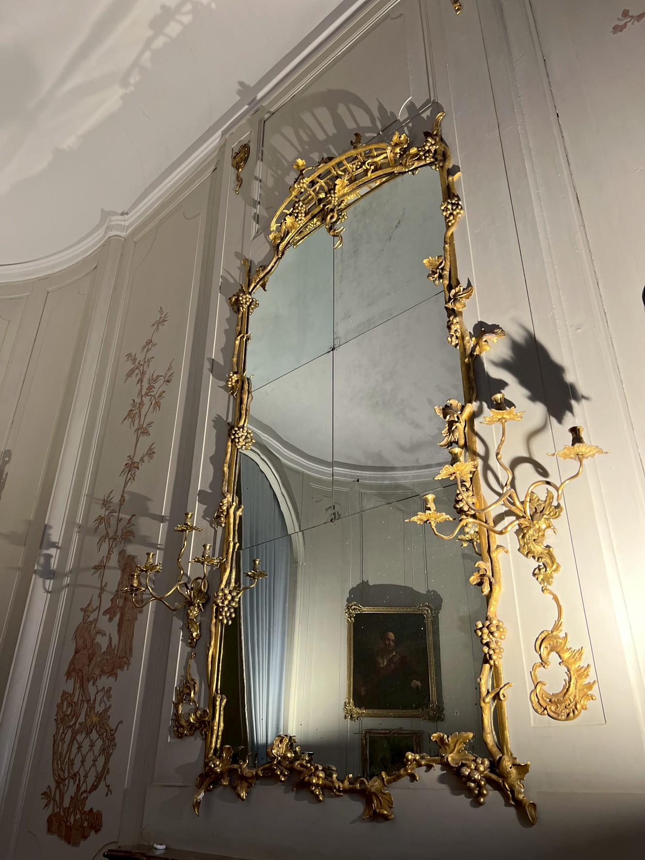 • ตัวอาคารเป็นสถาปัตยกรรมแบบ Rococo สีเหลืองทองอ่อน ตกแต่งหรูหราแต่แฝงด้วยความอบอุ่น