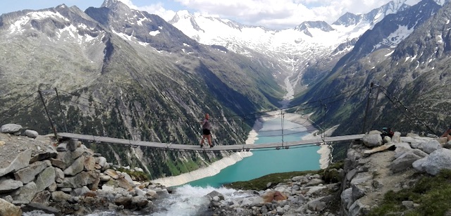 หากมีเวลาเหลือพอ นั่งรถต่อไปที่ Zillertal Alps อีกประมาณ 2 ชั่วโมงเศษ เพื่อไปสัมผัสประสบการณ์เดินบนสะพานแขวน Olpererhutte (Hanging Bridge) ที่จะสร้างความตื่นเต้นท่านกลางวิวที่สวยงามเกินบรรยาย